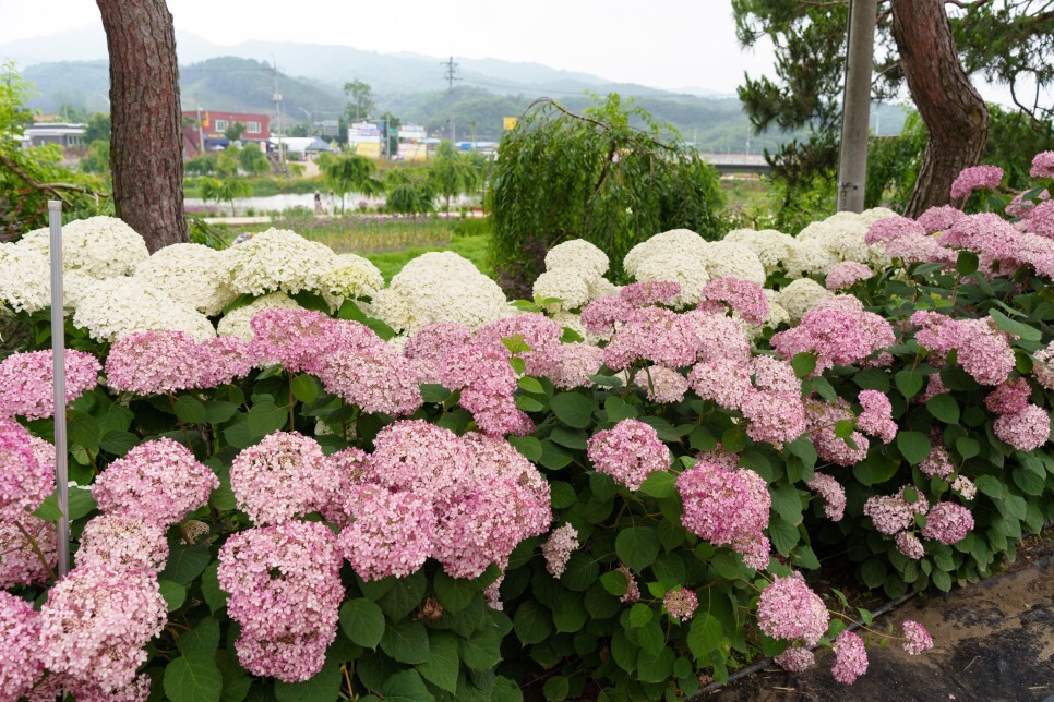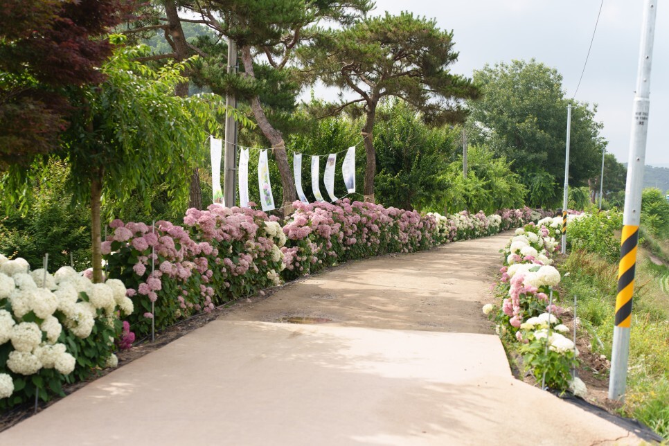 마지막 사진의 멀리 보이는 흰색 수국있는쪽이 수국정원 입니다. 지금까지의 사진은 다 뚝방길에 핀 수국들 이예요