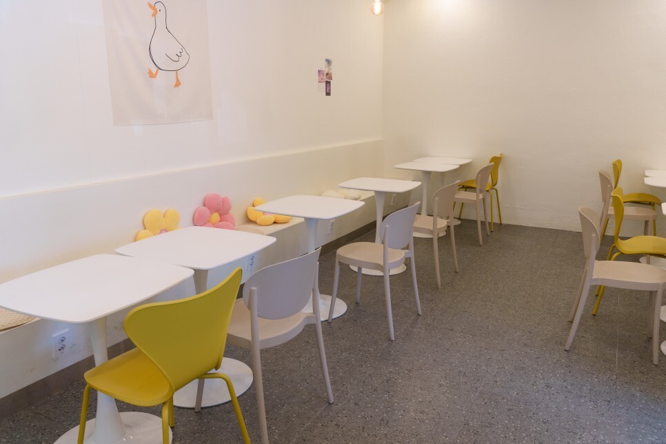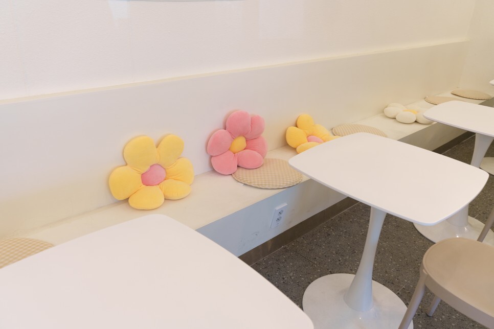 카페 내부는 전체적으로 화이트톤 인테리어에 웜톤 조명이 깔려있습니다.