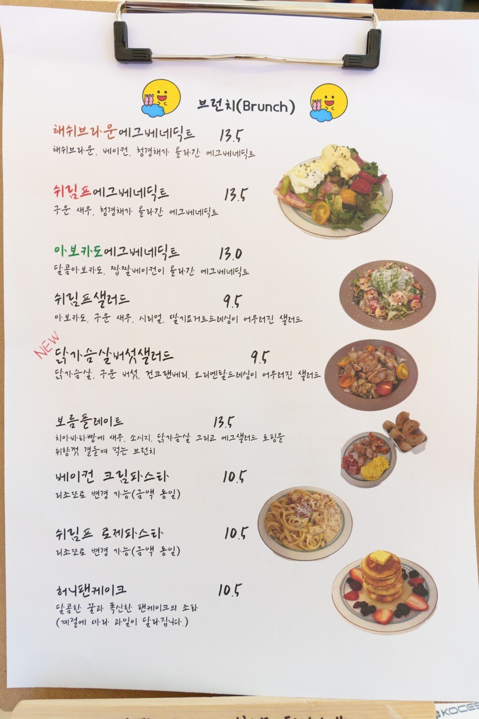 카페용 메뉴가 여러가지 있고, 디저트 약간과 다양한 브런치가 있습니다.