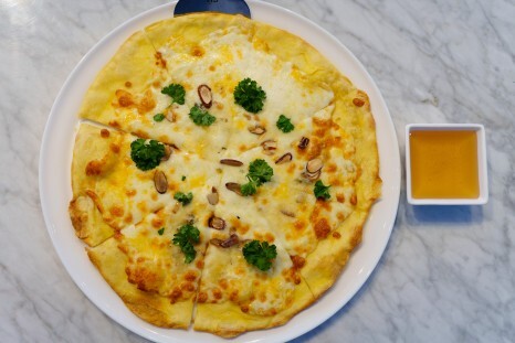 매우 얇은 씬피자, 견과류도 들어가 있어요.