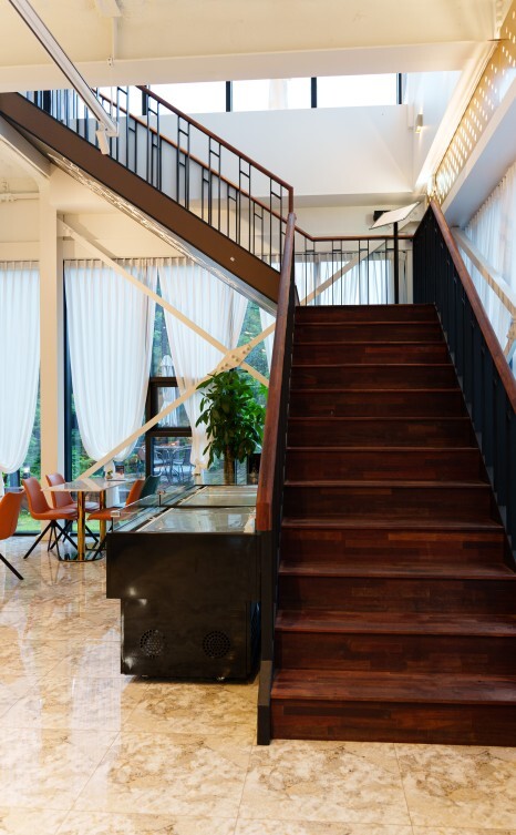 외부 계단을 통해 2층으로 올라갈 수 있습니다.
