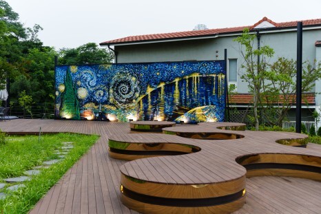 카페 입구 옆으로 고흐의 별이 빛나는 밤을 모티브로 한 작화가 있네요. 크기가 상당했어요.