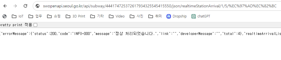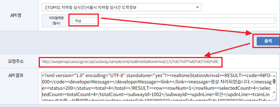 그럼 저는 제 인증키를 사용해서 json 타입으로 역삼의 데이터를 가져와 보겠습니다.
