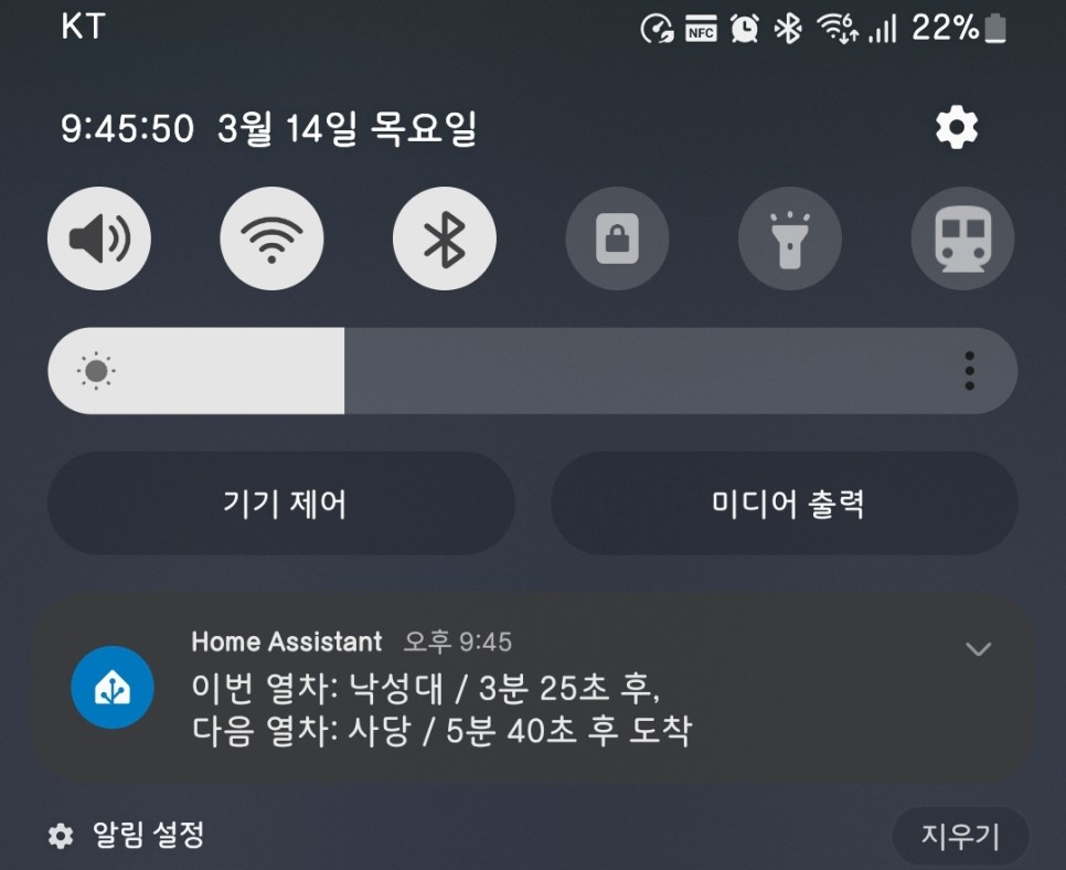 다음 열차: {{ state_attr('sensor.subway_arrival_messages_2', 'arvlMsg3') }} /