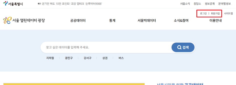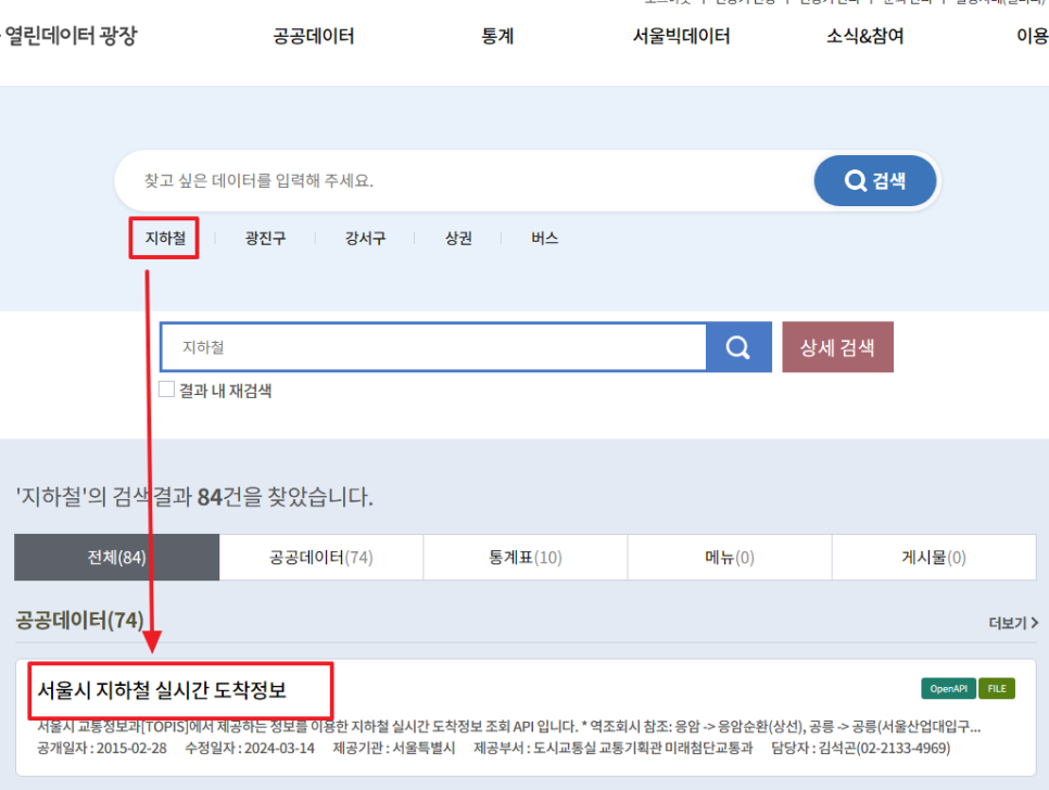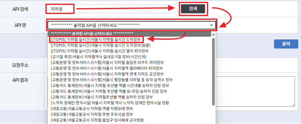 여기서 API검색 : 지하철 입력 후 -> 검색 클릭