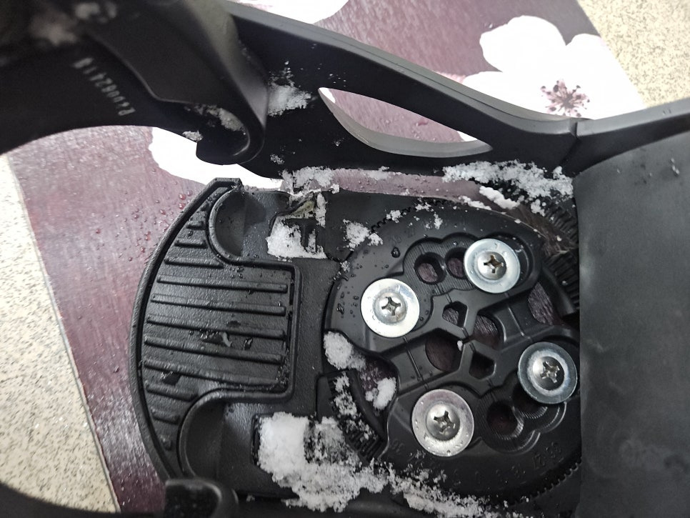 냉큼 준비하고 타러 나갔더니, 기존 바인딩과 이질감 없이 잘 맞는다고 하네요!